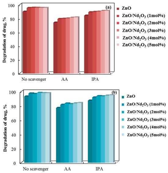 Mechanical energy is a plentiful, environmentally friendly, and sustainable energy source in the natural world. In this work, we successfully use friction to transform mechanical energy into ZnO and ZnO/Nd2O3 (1, 2, 3, 4 and 5 mol%) tribocatalysts. Under magnetic