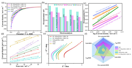 The escalating global energy crisis has intensified the demand for sustainable hydrogen production through electrochemical water splitting. Herein, we report a novel oxygen-vacancy-rich bifunctional electrocatalyst, Pt-NiSe@NiFe-LDH-Ov, synthesized via a facile electrodeposition and reduction method. It demonstrates exceptional performance, requiring low overpotentials of 280