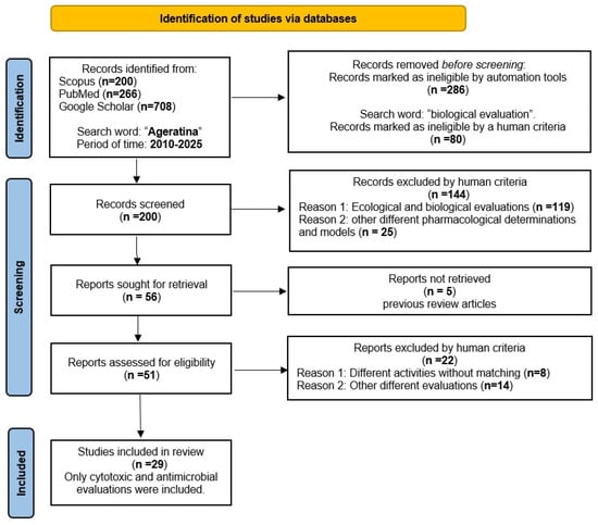 Medicinal plants have long been used for therapeutic purposes in many cultures. They represent sources of important bioactive compounds, often of pharmacological significance. Ageratina Spach is the largest genus in Mexico and is characterised by its traditional use in the treatment of cancer and infections of the skin, blood, and intestines. Different species of Ageratina have been biologically evaluated at the extract and compound levels, and their chemical contents have been purified and characterised. Following a PRISMA meta-analysis, 29 scientific reports were selected and analysed. Tables of different Ageratina species were integrated to compare their cytotoxic and antimicrobial activity at the extract and compound levels. Twelve pure and isolated natural compounds were tested for cytotoxic activity against several cell lines from lung, colon, and breast cancer, cervical carcinoma, hepatocarcinoma, promyelocytic leukaemia, and histiocytic lymphoma. Forty-one pure and isolated natural compounds were evaluated for antimicrobial activity against a wide spectrum of microorganisms, including Gram-positive and Gram-negative bacteria, yeast, fungi, parasites and viruses. Ageratina Spach contains cytotoxic and antimicrobial substances with broad chemical profiles. In addition to being a plant with active compounds, it could be useful for future rational drug design.