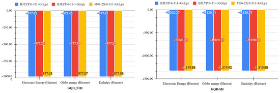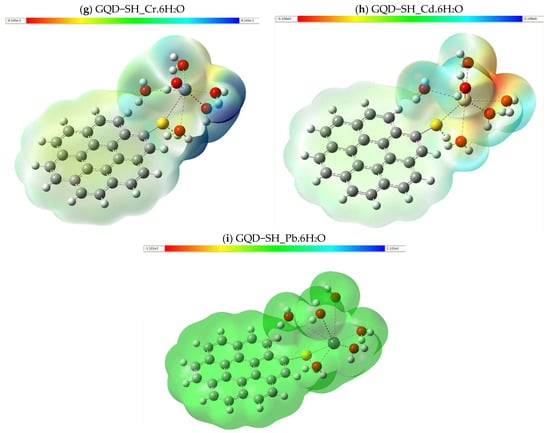 Given the growing interest in contaminant detection, research has addressed the functionalization behavior of graphene quantum dots (GQDs) with thiol (-SH) and amino (-NH2) groups to optimize and improve the selective detection of heavy metals in wastewater. Implementing Density Functional Theory