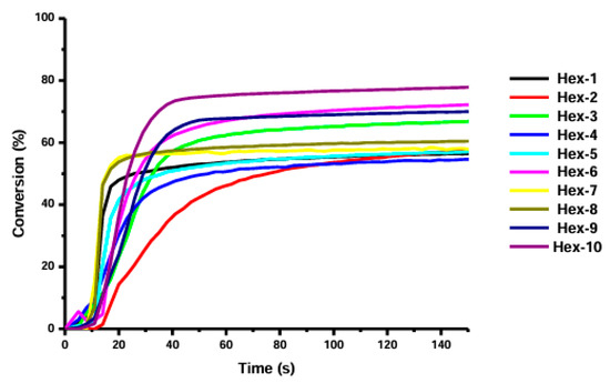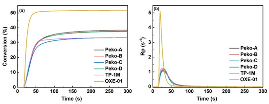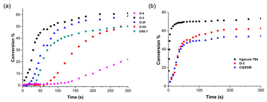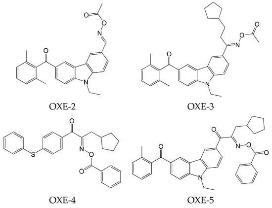 The development of new photoinitiators for photocurable systems has gained increasing interest in response to regulatory and environmental requirements, including efficient absorption in the UV/Vis range and reduced toxicity. Among emerging light-sensitive compounds, oxime esters have attracted growing attention as efficient radical photoinitiators. In this paper, five series of oxime esters based on carbazole, coumarin, carbazole–coumarin, phenothiazine, and triphenylamine scaffolds were described. Their high performance in photopolymerization processes was presented, demonstrating their ability to act as both type I and type II photoinitiators, as confirmed by high monomer conversion degrees. These data highlight oxime esters as versatile photoinitiating systems and provide a basis for further structural optimization aimed at improving water solubility and enabling comprehensive cytotoxicity assessment.