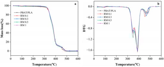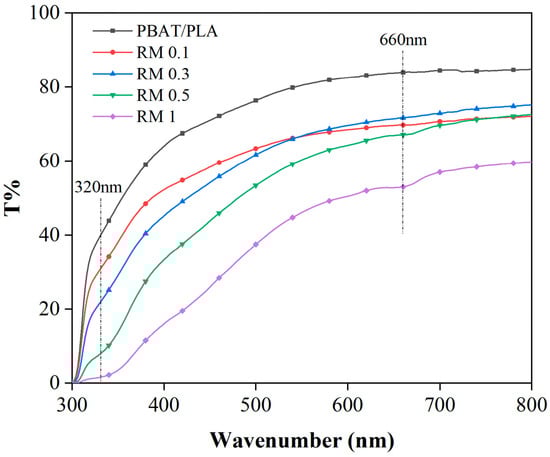 With the growing demand for eco-friendly food packaging, poly(butylene adipate-co-terephthalate) (PBAT)/polylactic acid (PLA) composite films have emerged as promising biodegradable alternatives, but their inherent limitations (e.g., poor antioxidant capacity, weak UV stability, and insufficient antimicrobial activity) hinder practical applications. This study aimed to address these drawbacks by incorporating Rosmarinus officinalis L. extract (RM) as a natural multifunctional additive. PBAT/PLA/RM blend films with RM concentrations of 0.1%, 0.3%, 0.5%, and 1% were fabricated via melt extrusion and blown film processing. Key characterizations were conducted to evaluate thermal stability, mechanical properties, morphology, antioxidant activity, UV-shielding performance, antimicrobial efficacy, and biodegradability. The results showed that RM significantly enhanced the antioxidant capacity of the films, with the highest DPPH radical scavenging activity achieved at 0.3% RM. UV-blocking performance improved incrementally with increasing RM concentration, and films containing ≥0.5% RM filtered over 90% of UVA and UVB radiation. All composite films met biodegradability standards, with over 90% degradation observed after 240 days of composting, though RM prolonged the initial degradation stage by inhibiting early microbial activity. However, the antimicrobial effect of RM was limited, and concentrations exceeding 1% caused film stickiness, impeding processing. This work demonstrates that RM is a viable natural additive for functionalizing PBAT/PLA films, offering enhanced antioxidant and UV-shielding properties while maintaining biodegradability, thus providing a promising solution for sustainable food packaging.