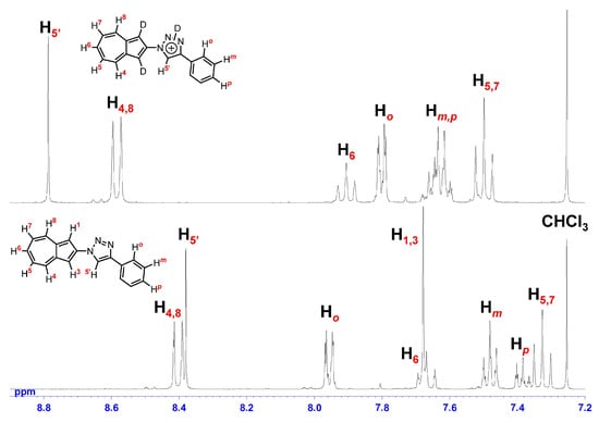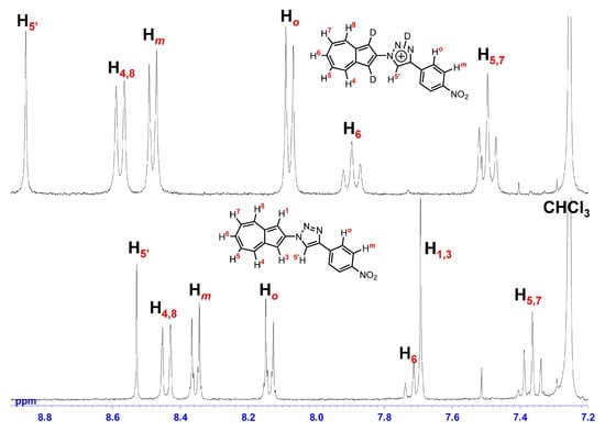 We developed an efficient and modular route to 2- and 6-(1,2,3-triazol-1-yl)azulenes to expand the synthetic accessibility and functional scope of azulene-based π-systems with stimulus-responsive photophysics. Readily accessible 2- and 6-azidoazulenes, prepared in excellent yields via SNAr reactions of haloazulenes, were subjected to Cu(I)-catalyzed Huisgen [3 + 2] cycloaddition with a broad range of terminal alkynes to afford the corresponding triazolylazulenes in good to high yields, followed by acid-mediated decarboxylation and Staudinger reduction to enable further diversification to 2-azulenyltriazoles and a 6-aminoazulene derivative. Single-crystal X-ray diffraction analysis revealed substitution-position-dependent torsional arrangements and variations in π-conjugation between the azulene and triazole units. Photophysical characterization by UV/Vis absorption and fluorescence spectroscopy showed pronounced halochromism under acidic conditions, and selected derivatives displayed substantially enhanced fluorescence quantum yields. Overall, these results establish the azulene–1,2,3-triazole motif as a versatile building block for designing optoelectronic π-systems with acid-responsive emission properties.