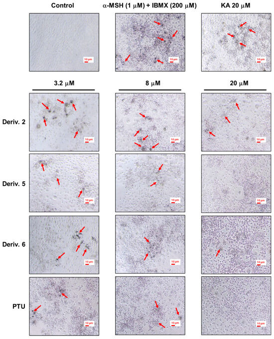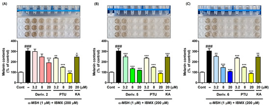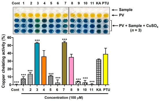 In this study, we designed and synthesized 11 N-aryl-S-aryl-2-mercaptoacetamide derivatives as new tyrosinase inhibitors (TYRIs). Experiments with pyrocatechol violet confirmed that four derivatives showed copper-chelating abilities similar to or superior to those of well-known copper-chelating TYRIs like kojic acid (KA)