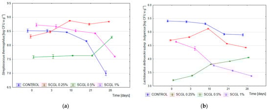 This study evaluated the effects of different concentrations (0.25%, 0.5%, and 1.0% w/w) of highly purified (90%) β-glucan (scleroglucan—SCGL) produced by Sclerotium rolfsii on the physicochemical, rheological, microbiological, and sensory properties of full-fat yoghurt (3.2% fat). The fermentation dynamics, titratable