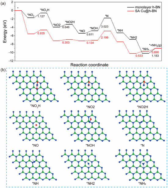 Theoretical Calculations on Hexagonal-Boron-Nitride-(h-BN)-Supported Single-Atom Cu for the Reduction of Nitrate to Ammonia