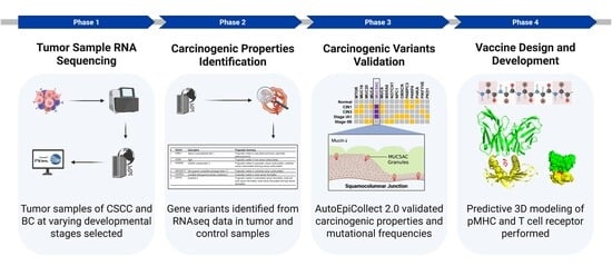 Personalized cancer vaccines are a key strategy for training the immune system to recognize and respond to tumor-specific antigens. Our earlier software release, AutoEpiCollect 1.0, was designed to accelerate the vaccine design process, but the identification of tumor-specific genetic variants remains a manual process and is highly burdensome. In this study, we introduce AutoEpiCollect 2.0, an improved version with integrated genetic analysis capabilities that automate the identification and prioritization of tumorigenic variants from individual tumor samples. AutoEpiCollect 2.0 connects with RNA sequencing and cross-references the resulting RNAseq data for efficient determination of cancer-specific and prognostic gene variants. Using AutoEpiCollect 2.0, we conducted two case studies to design personalized peptide vaccines for two distinct cancer types: cervical squamous cell carcinoma and breast carcinoma. Case 1 analyzed five cervical tumor samples from different stages, ranging from CIN1 to cervical cancer stage IIB. CIN3 was selected for detailed analysis due to its pre-invasive status and clinical relevance, as it is the earliest stage where patients typically present symptoms. Case 2 examined five breast tumor samples, including HER2-negative, ER-positive, PR-positive, and triple-negative subtypes. In three of these breast samples, the same epitope was identified and was synthesized by identical gene variants. This finding suggests the presence of shared antigenic targets across subtypes. We identified the top MHC class I and class II epitopes for both cancer types. In cervical carcinoma, the most immunogenic epitopes were found in proteins expressed by HSPG2 and MUC5AC. In breast carcinoma, epitopes with the highest potential were derived from proteins expressed by BRCA2 and AHNAK2. These epitopes were further validated through pMHC-TCR modeling analysis. Despite differences in cancer type and tumor subtype, both case studies successfully identified high-potential epitopes suitable for personalized vaccine design. The integration of AutoEpiCollect 2.0 streamlined the variant analysis workflow and reduced the time required to identify key tumor antigens. This study demonstrates the value of automated data integration in genomic analysis for cancer vaccine development. Furthermore, by applying RNAseq in a standardized workflow, the approach enables both patient-specific and population-level vaccine design, based on statistically frequent gene variants observed across tumor datasets. AutoEpiCollect 2.0 is freely available as a website based tool for user to design vaccine.