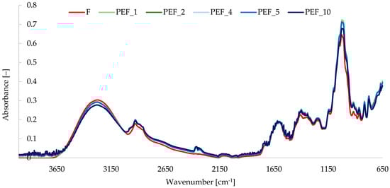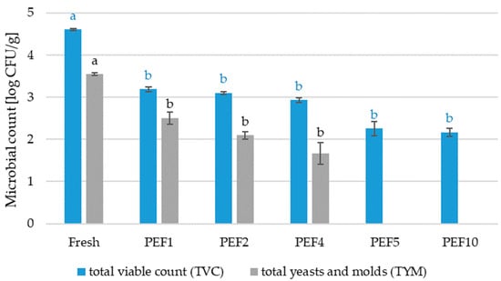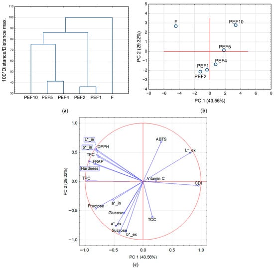 This study evaluated the energy-dependent effects of pulsed electric field (PEF) treatment on the physicochemical properties, bioactive compounds, antioxidant activity, and microstructure of red bell pepper (Capsicum annuum L.). Red bell pepper tissue was treated at specific energy inputs ranging from 1 to 10 kJ/kg and compared with a fresh (untreated sample). The cell disintegration index (CDI) increased progressively with PEF energy, confirming enhanced membrane permeabilization and structural disruption. Structural analyses (SEM and micro-CT) confirmed the formation of pores and interconnected channels, particularly at moderate and high energies. PEF treatment caused a decrease in total polyphenols and flavonoids, whereas vitamin C and total carotenoid contents increased at intermediate energies. Antioxidant activity (ABTS, DPPH, FRAP) declined overall but remained at comparable levels for mild PEF exposure. A significant reduction in firmness was observed (from 17% to 27% compared with the untreated control), and color changes were dependent on the energy input, while microstructural degradation intensified as the energy level approached 10 kJ/kg. PEF treatment improved microbial stability, resulting in a measurable reduction in total viable counts and yeast and mold counts, particularly at higher energy inputs. FTIR, TGA, and NMR data confirmed molecular alterations without degradation of major components. Multivariate analysis (dendrogram, PCA) distinguished four characteristic response groups: fresh, low-energy (1–2 kJ/kg), moderate-energy (4–5 kJ/kg), and high-energy (10 kJ/kg). PEF treatment selectively modified red bell pepper tissue, enhancing permeabilization and carotenoid/vitamin C release while preserving visual quality at mild–moderate energies. These results demonstrate the potential of PEF as a nonthermal technique for tailoring the structural and functional properties of plant-based products.