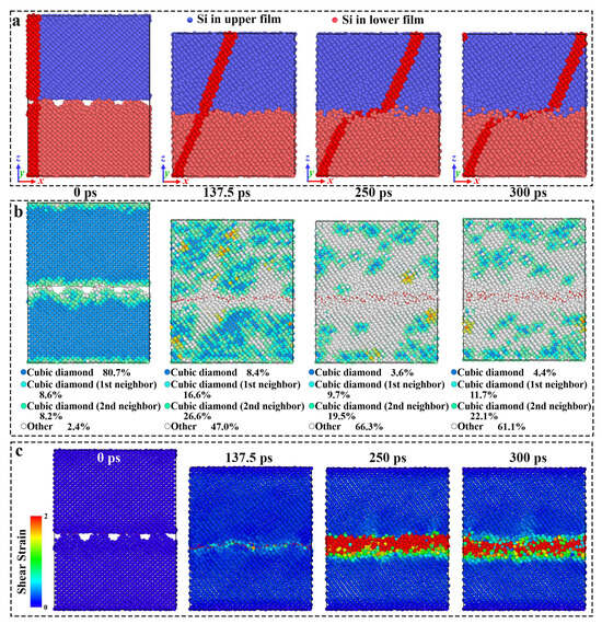 Silicon is commonly used in micro/nano-electromechanical system (MEMS/NEMS) devices. Because detailed information about the friction interface in these systems is lacking, the relationship between texture shape and friction remains unclear. In this study, molecular dynamics simulations were performed to investigate the dry-friction tribological