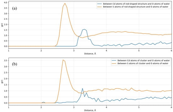 Understanding the atomic-level behavior of photocatalysts under hydrated conditions is essential for improving hydrogen production efficiency. In this work, density functional theory calculations and classical all-atom molecular dynamics simulations were performed to investigate the intra- and intermolecular interactions of rod- and cluster-shaped cadmium
