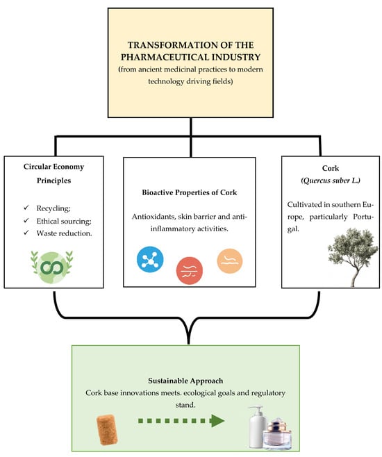 The pharmaceutical sector has evolved toward innovation-driven and sustainability-oriented development, driven by increasing regulatory pressure and global health challenges. In this context, cork (Quercus suber L.) has emerged as a promising bio-based resource due to its renewable nature, near-zero-waste processing chain, and