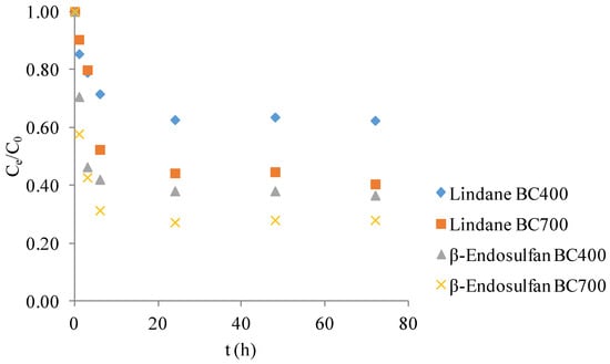 This study investigates the potential of corn cob-derived biochars produced at 400 °C (BC400) and 700 °C (BC700) as heterogeneous catalysts for the degradation of organochlorine pesticides, lindane and β-endosulfan, through persulfate-based advanced oxidation processes (AOPs). BC700 exhibited enhanced degradation performance compared to