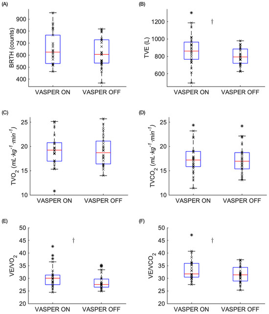 Blood flow restriction (BFR) and body cooling (BC) have been investigated separately during exercise, but little is known about their concurrent use. This study examined acute metabolic responses, respiratory physiology, and rate of perceived exertion (RPE) during interval training (IT) performed with combined BFR and BC (VASPER ON) compared with IT without BFR and BC (VASPER OFF). It was hypothesized that VASPER ON would elicit greater physiological demands. A total of 7 female and 19 male participants (20.2 ± 2.4 years) completed a 21-min IT exercise. In VASPER ON, the participants wore cuffs that simultaneously applied BFR and BC. Total oxygen consumption (TVO2), total carbon dioxide production (TVCO2), total breaths (BRTH), and total ventilation (TVE) were measured during exercise (EX) and for 10 min post-exercise (Post-EX). RPE was recorded during EX. During EX, TVE and ventilatory equivalents for both oxygen and carbon were significantly higher in VASPER ON. Post-EX, all variables remained significantly elevated in VASPER ON except for the ventilatory equivalent for carbon dioxide. Sprint interval RPE was significantly lower in VASPER OFF. These findings suggest that concurrent BFR and BC increase post-exercise metabolic and ventilatory demands without attenuating each other’s effect.