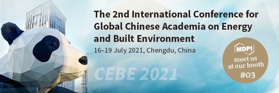 MDPI will be attending the 2nd International Conference for Global Chinese Academia on Energy and Built Environment (CEBE 2021) in Chengdu, China, on 16–19 July 2021. The conference aims at establishing a worldwide platform for promoting global cooperation and innovative communications for ethnic Chinese around the globe, sharing cutting-edge achievements in the utilization of clean energy, the enhancement of energy efficiency via the built environment, and the improvement in environmental quality.