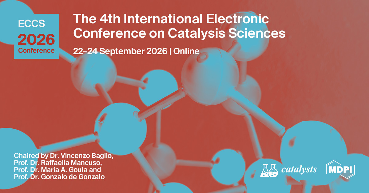 We are excited to announce the 4th International Electronic Conference on Catalysis Sciences (ECCS 2026) organized by MDPI’s Catalysts (ISSN: 2073-4344, Impact Factor: 4.0, Citescore: 7.6), which will be held from 22 to 24 September 2026, CEST.