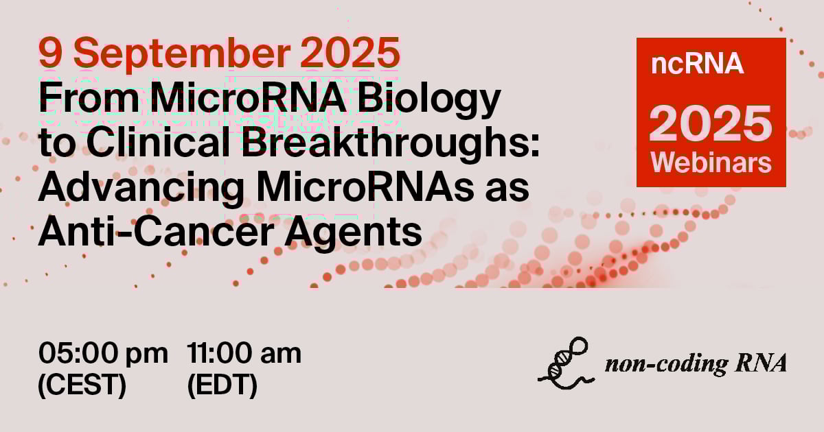 Non-Coding RNA Webinar | From MicroRNA Biology to Clinical Breakthroughs: Advancing MicroRNAs as Anti-Cancer Agents, 9 September 2025