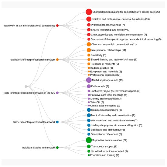 Background/Objectives: This study aimed to analyze the perceptions and experiences of health professionals regarding teamwork as an interprofessional competency within the context of Intensive Care Units (ICUs) in a Brazilian public teaching hospital. Methods: This was a qualitative, exploratory study guided