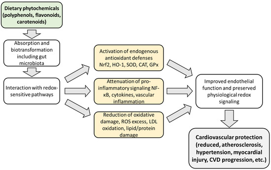 This Special Issue will focus on the role that plant-derived chemical compounds such as Polyphenols, Carotenoids, Glucosinolates, Flavonoids, Alkaloids, Isoflavones, Beta-carotene, Phytosterols, Anthocyanidins, Catechins, Terpenoids, etc., could play in cardiovascular disease prevention and treatment. Although they are generally not considered essential nutrients for human health, they have potential benefits through their antioxidant, anti-inflammatory, and immune-boosting properties. This Special Issue will specifically focus on harnessing these compounds for the prevention and treatment of heart and circulatory diseases. This issue will cover their modes of action, efficacy, and any trials on their use in the prevention or treatment of cardiovascular diseases. Studies with animal or human models of cardiovascular diseases, as well as mechanistic studies with cells and tissues that demonstrate potential, are welcome for submission.