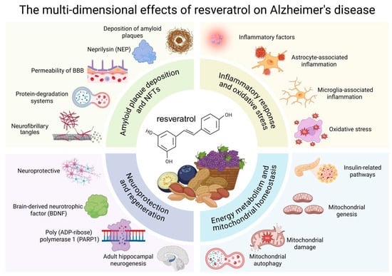 Alzheimer’s disease (AD) represents a prevalent neurodegenerative disorder marked by a gradual decline in cognitive and behavioral functions. Despite advancements in elucidating several potential mechanisms underlying the pathogenesis of AD, there remains a limitation in effective supplements or medications for its intervention. Resveratrol,