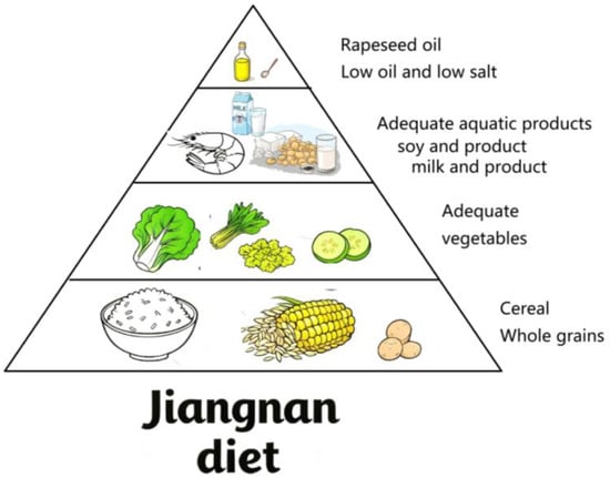 Background/Objectives: The Jiangnan diet—a traditional dietary pattern prevalent in Eastern China—is a newly proposed dietary pattern. This study provides additional epidemiological evidence for the promotion of the Jiangnan diet through examining the association between the Jiangnan diet and mild cognitive impairment (MCI).