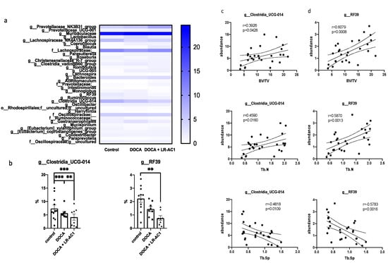 Background/Objectives: Osteoporosis is a prevalent and debilitating skeletal disease characterized by a progressive loss of bone mass and deterioration of bone microarchitecture. Probiotics have emerged as a potential therapeutic tool for treating osteoporosis through modulation of the gut microbiota. In this study, we aimed to examine the effects of live Lacticaseibacillus rhamnosus AC1 (LR-AC1), isolated from a fecal sample from a newborn in Hong Kong, on deoxycorticosterone acetate (DOCA)-induced bone loss in a rat model. Methods: Bone mass and microarchitecture were assessed using micro-computed tomography (micro-CT). Immunostaining for CD31+ and osterix, markers of endothelial cells and osteoblast precursors, respectively, was performed. Gut microbiota composition was analyzed via 16S rRNA sequencing. The effects of an LR-AC1 cell-free conditioned supernatant (CCS) on osteoclastogenesis, angiogenesis, and migration of bone marrow mesenchymal stem cells (BMSCs) were evaluated in vitro using RT-qPCR and wound healing assays. Results: LR-AC1 administration did not induce adverse effects in healthy rats; however, it exacerbated bone loss in rats with DOCA-salt-induced osteoporosis. Correspondingly, the number of CD31-positive endothelial cells and osterix-positive osteoprogenitors decreased with bone loss. In vitro, LR-AC1 CCS promoted osteoclastogenesis and angiogenesis, while in the presence of DOCA, LR-AC1 CCS inhibited BMSC migration. Gut microbiota analysis revealed that the relative abundances of the genera g_RF39 and g_Clostridia_UCG-014 correlated with the severity of bone loss. Conclusions: While several studies suggest that probiotics can prevent and treat osteoporosis, our findings indicate that in a male rat model of DOCA-salt-induced osteoporosis, live LR-AC1 aggravated bone loss. This effect is associated with alterations in gut microbiota and disruption of the coupling process in bone remodeling.