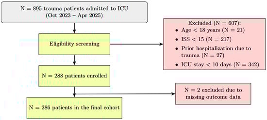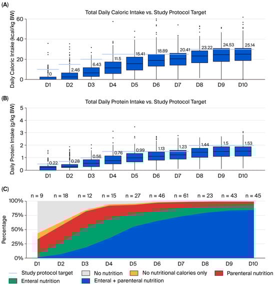 Background: Optimal energy and protein delivery during the early phase of severe trauma remains unclear. Observational studies frequently contradict the findings of randomized controlled trials, raising concerns about confounding factors. The aim of this study is to assess nutritional adequacy and daily variability