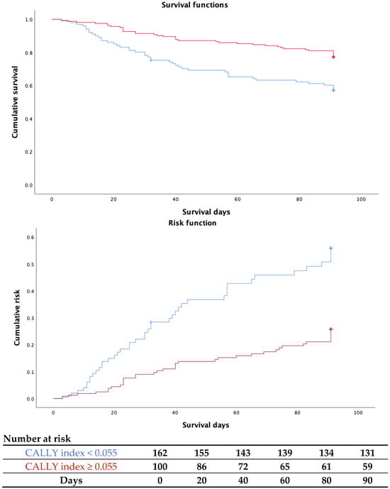 Background/Objectives: Malnutrition, systemic inflammation, and immune dysfunction are key determinants of adverse outcomes in older adults following acute illness. Composite biomarkers integrating these domains could enhance early risk stratification. This study investigates, for the first time in acute geriatric care, the prognostic value of the C-reactive protein–albumin–lymphocyte (CALLY) index—a composite marker of nutritional, inflammatory, and immune status—in predicting short-term survival. Methods: We retrospectively analyzed 264 patients admitted to the acute geriatrics ward of Santa Maria della Misericordia Hospital in Perugia. The CALLY index was calculated as: (Albumin × Lymphocytes)/(CRP × 104). The optimal prognostic cut-off was determined using receiver operating characteristic (ROC) curve analysis. Three-month survival was assessed by Kaplan–Meier analysis. Results: The cohort included 167 women (63.3%) and 97 men (36.7%), with a mean age of 88.0 ± 6.4 years. At 3-month follow-up, 80 patients (30.3%) had died. The CALLY index showed an area under the ROC curve of 0.647 (95% CI: 0.576–0.718; p < 0.001), with a cut-off of 0.055 (sensitivity: 68.5%, specificity: 46.3%). Among deceased patients, 42.5% had a CALLY index <0.055. After multivariable adjustment, a lower CALLY index remained independently associated with increased mortality (B = −0.805; OR = 0.45; 95% CI: 0.215–0.930; p = 0.031). Kaplan–Meier analysis demonstrated significantly higher survival in patients with a CALLY index ≥ 0.055 (Log-rank test: 13.71; p < 0.001). Conclusions: The CALLY index shows a modest but statistically significant discriminative ability for predicting short-term mortality in acutely ill older adults. As a simple, low-cost marker derived from routine laboratory tests, it holds potential for integration into clinical workflows to guide nutritional, metabolic, and prognostic management strategies in geriatric acute care.