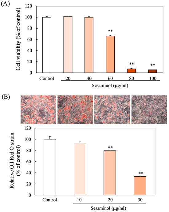 Background: As a key contributor to metabolic disorders, obesity is recognized as a critical global health challenge. Adipocyte differentiation depends on the mitotic clonal expansion (MCE) phase, which is controlled by oxidative balance and transcription factors like C/EBPβ. Sesaminol, a lignan derived from