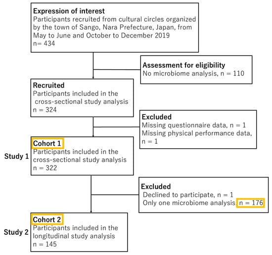 Background/Objectives: Frailty and sarcopenia are age-related conditions that impair quality of life in older adults. Although the gut microbiota affects muscle health, its role in sarcopenia remains unclear. This study investigated the association between gut microbiota enterotypes and sarcopenia in community-dwelling older Japanese adults. Methods: In this cross-sectional study, 322 community-dwelling adults from the Japanese Frailty Scale cohort aged ≥65 years were assessed for sarcopenia using standardized criteria. Physical measures included grip strength, gait speed, and skeletal muscle mass index (SMI). Gut microbiota profiles were analyzed using 16S rRNA sequencing and classified into four enterotypes (ET-B1, ET-B2, ET-R, ET-P). Associations with sarcopenia were evaluated using multivariable logistic regression. Results: Participants with enterotype ET-B2 had significantly lower microbial diversity (p < 0.01) and reduced grip strength (p < 0.05), whereas the difference in SMI compared with ET-P individuals did not reach statistical significance (p = 0.0625). Sarcopenia prevalence differed significantly between enterotypes (p < 0.01). A predictive model incorporating age and ET-B2 exhibited an area under the receiver operating characteristic curve (AUC) of 0.795, significantly higher than the age-only model (AUC = 0.686, DeLong’s test, p < 0.05). Conclusions: Gut microbiota composition, especially enterotype ET-B2, is significantly associated with sarcopenia in older Japanese adults. These findings indicate the potential for using the gut microbiota as a biomarker and therapeutic target in treating age-related muscle decline.
