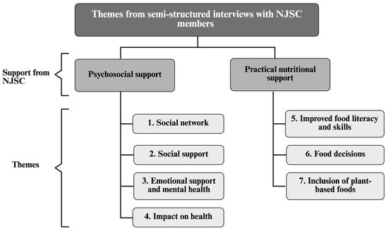 (1) Background: Nutrition research in cancer care has largely focused on disease prevention and management, overlooking the importance of food literacy. Culinary cancer care programs may address this gap by facilitating the practical application of nutrition through culinary skills, fostering social connections over nutrient-dense meals, and supporting individuals during periods of physical and social vulnerability. The Not-Just-Supper Club (NJSC) at Gilda’s Club Toronto (GT) is a community-based culinary cancer care program delivering evidence-based, plant-forward meals. The objectives of this study were to examine how NJSC supports its members and to provide recommendations to inform future models of culinary cancer care programs. (2) Methods: An explanatory sequential mixed methods design was used. Participants completed a modified food frequency questionnaire (FFQ) assessing major protein food groups since joining NJSC. Semi-structured interviews explored perceived dietary changes, food literacy, and social engagement. Associations between duration of participation and protein food intake were examined using multivariable-adjusted linear regression models. Interview field notes and transcripts were coded in NVivo 12 and thematically analyzed. (3) Results: Among 41 participants, 36 (88%) were female and 17 (41%) were of White ethnicity. A total of 38 (93%) participants reported that NJSC had a positive impact on their lives, and 27 (66%) reported positive changes in eating habits. In multivariable-adjusted analyses, longer participation in NJSC was associated with higher nut consumption (β = 0.49 servings/day per year; 95% CI, 0.02–0.96). Interviews were completed by 40 participants. Seven themes described program support across psychosocial domains (social network; social support; emotional support and mental health; impact on health) and practical nutritional domains (improved food literacy and skills; food decisions; inclusion of plant-based foods). Participants described applying program knowledge at home and perceived improvements in well-being and cancer-related symptoms. (4) Conclusions: NJSC was perceived by members as beneficial across psychosocial and nutritional domains and supported food literacy and plant-forward dietary choices. These findings contribute to our understanding of how culinary cancer care programs can complement existing cancer support services and provide insights for designing future programs for cancer survivors and their support networks.
