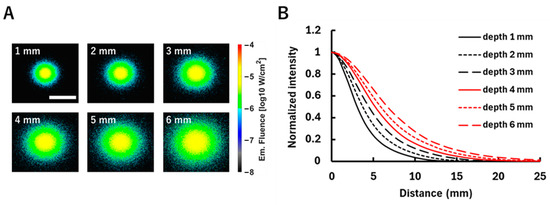 Estimating the depth of a fluorescently labeled tumor is beneficial in tumor resection. In this study, we proposed a method for the three-dimensional position estimation of fluorescent tumors using Monte Carlo simulations. A limited proof-of-concept experiment was conducted, and the two-dimensional position of a tumor was estimated by calculating the centroid of the fluorescence distribution, which was obtained by using excitation light to scan the surface of the model. The depth of the tumor was estimated by fitting the analytical equation based on Beer’s law to the diffuse fluorescence profile on the surface of the model. In the estimation of the two-dimensional position, the distance between the embedded and estimated tumor coordinates was 0.71 mm. The estimated tumor depths of 2–6 mm closely matched the embedded depths, with an error rate of approximately 20%. In previous studies, depth estimation was limited to 1–5 mm using visible light, whereas for the simulation used in the present study, the use of longer wavelengths enabled estimation at slightly greater depths.