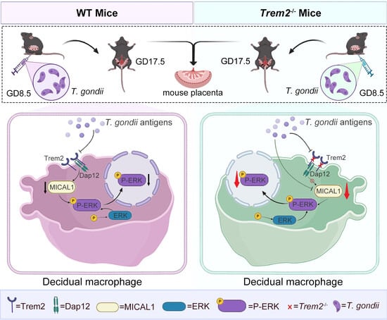 Trem2-MICAL1-P-ERK Axis in Macrophages Confers Protection Against Toxoplasma gondii-Induced Adverse Pregnancy Outcomes