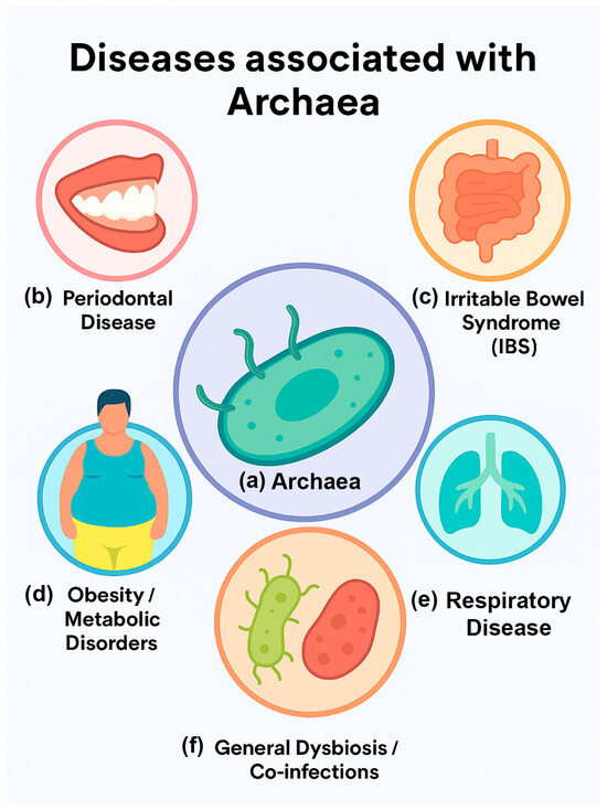 Archaea, one of the three domains of life, are increasingly recognized as consistent, though often underappreciated, members of the human microbiome, yet their roles in health and disease remain poorly understood. Unlike bacteria, no archaeal species have been conclusively identified as primary mammalian pathogens, but their widespread presence across diverse body sites suggests potential indirect contributions to host physiology and pathology. Current evidence is synthesized on archaeal diversity and habitat specificity across multiple human-associated sites, encompassing the gastrointestinal, aerodigestive, and urogenital tracts as well as the skin. Methanogens dominate the lower gastrointestinal tract (LGT), where they influence fermentation dynamics and methane production, while members of the class Nitrososphaeria are prevalent on the skin and upper aerodigestive tract (UAT), reflecting ecological specialization. Variability in archaeal composition across niches highlights possible links to disease processes: methanogens have been associated with irritable bowel syndrome (IBS), inflammatory bowel disease (IBD), obesity, and colorectal cancer (CRC); Methanobrevibacter oralis is enriched in periodontal disease; and archaea have been detected in the lungs of cystic fibrosis patients. Although archaea lack canonical bacterial virulence factors, they may contribute indirectly through metabolic cross-feeding, immune modulation, synergy in polymicrobial infections, and alteration of host–microbiome network dynamics. This review explores the emerging concept of the human “archaeome”, evaluates current evidence for archaeal involvement in disease, and highlights emerging technologies, such as bacteria-MERFISH and multi-omics profiling, that enable translational applications including microbiome diagnostics, therapeutic targeting, and microbiome engineering.