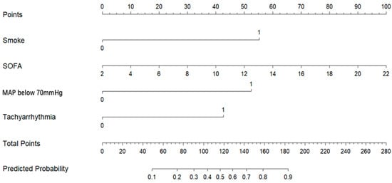 To develop and validate a predictive model for assessing the risk of short-term mortality in patients with invasive fungal diseases (IFDs) following cardiac surgery. This retrospective study analyzed clinical data from patients diagnosed with postoperative IFDs in the cardiac surgical intensive care unit (ICU) of Qilu Hospital of Shandong University (QLH), between January 2020 and December 2023. A total of 98 patients were included and divided into a non-survival group (n = 42) and a survival group (n = 56) based on 28-day mortality. Demographic, clinical, and postoperative parameters were collected. The Least Absolute Shrinkage and Selection Operator (LASSO) regression was used for variable selection, and selected variables were then entered into multivariate logistic regression to identify independent risk factors. A nomogram was developed, and its predictive performance was evaluated using the receiver operating characteristic (ROC) curve, decision curve analysis (DCA), and clinical impact curve (CIC). Multivariate logistic regression, following variable selection by LASSO, identified a history of smoking, an elevated SOFA score, mean arterial pressure (MAP) below 70 mmHg, and tachyarrhythmia as independent risk factors for short-term mortality in this cohort (p < 0.05). The prediction model demonstrated excellent discrimination, with an area under the ROC curve (AUC) of 0.886 (95% CI: 0.816–0.957). The calibration curve showed good agreement between predicted and observed outcomes, with a mean absolute error of 0.023. Decision curve analysis indicated a net clinical benefit across a threshold probability range of 0.1 to 0.87. The clinical impact curve confirmed a high concordance between predicted mortality and actual outcomes. A history of smoking, an elevated SOFA score, MAP below 70 mmHg, and tachyarrhythmia independently predict short-term mortality in patients with IFDs after cardiac surgery. Therefore, the nomogram constructed from these factors provides an accurate and clinically applicable tool for risk stratification.