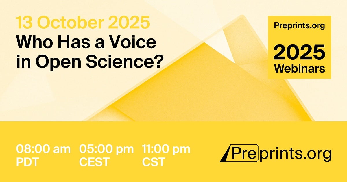 This webinar, hosted by Preprints.org, invites advocates from the open science community and platform leaders to ask, “Who Has a Voice in Open Science?” and explore how diverse perspectives, along with the growing role of preprints, can foster a more inclusive and collaborative research culture.