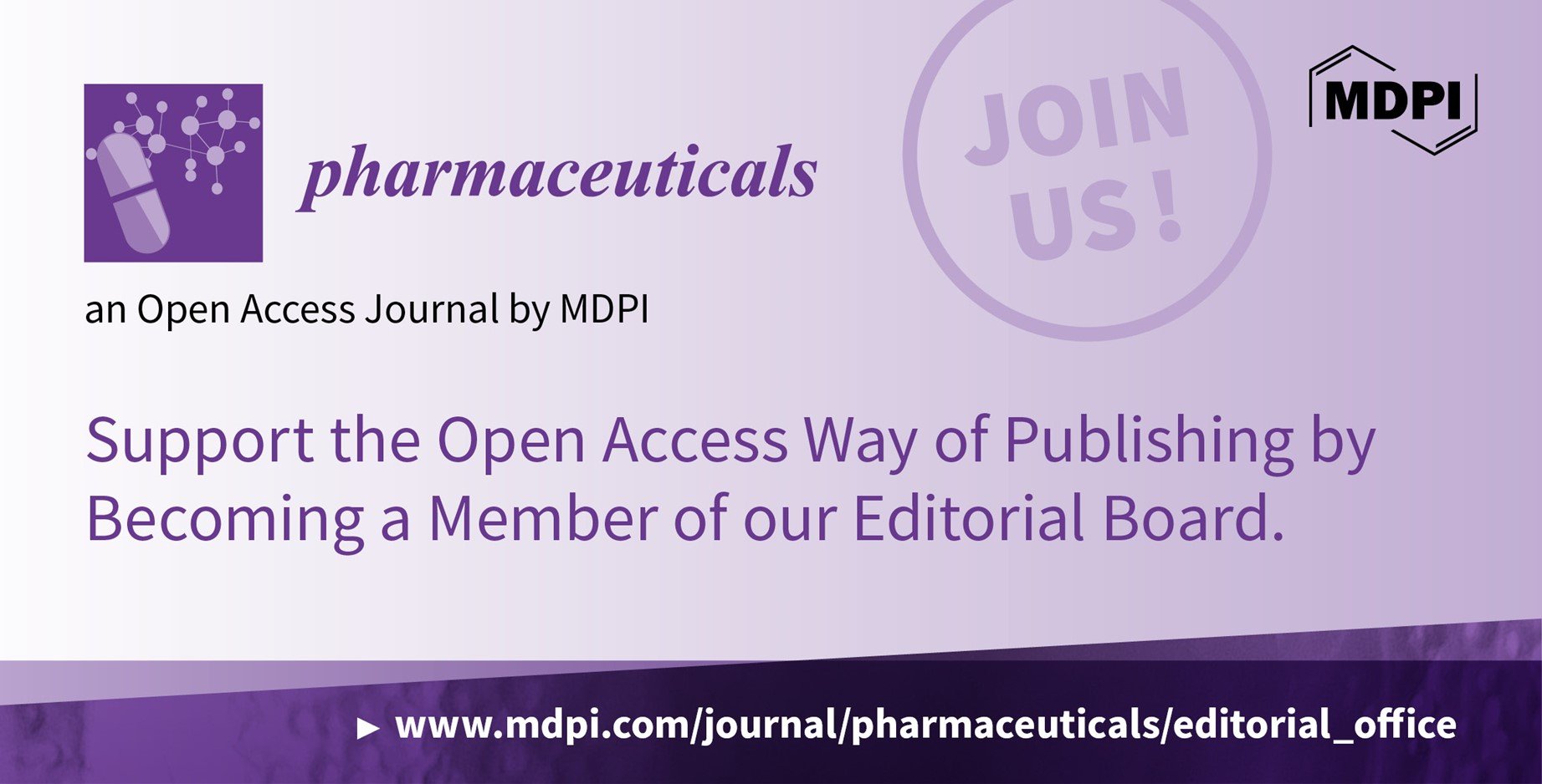 Pharmaceuticals (ISSN: 1424-8247, IF: 4.3) is currently recruiting Editorial Board Members. A list of our current Board Members can be found at https://www.mdpi.com/journal/pharmaceuticals/editors.