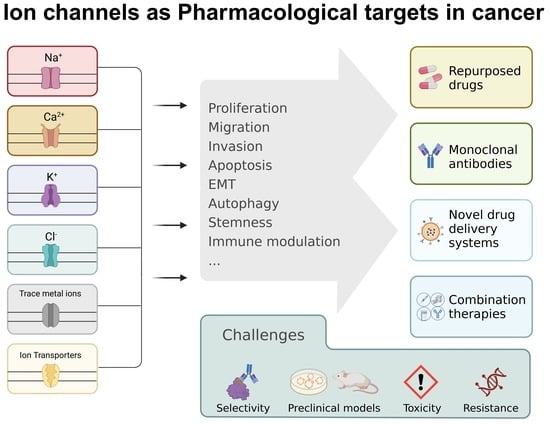 This evidence makes ion channels promising targets for fighting cancer through the identification of new pharmacological agents, drug repositioning and feasibly the use of target therapies, including monoclonal antibodies.