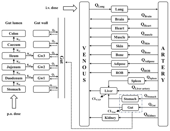 The physiologically based pharmacokinetic (PBPK) model employs differential equations to analyze drug dynamics across various body tissues. This modeling approach, extensively applied within the pharmaceutical industry, is instrumental in predicting and evaluating drug efficacy and safety profiles. Focusing on accurately forecasting alterations in enzyme and transporter protein functions within organs, PBPK modeling offers significant advantages for studying special populations, including the elderly, pregnant women, neonates, and patients with hepatic or renal dysfunction, as well as for assessing drug–drug interactions. Recently, pharmacometrics has become a standard regulatory tool, facilitating analyses of surrogate endpoints to support accelerated drug approvals. Furthermore, it plays a pivotal role in critical trial phases for dose selection, dosing strategies for special populations (e.g., pediatric patients), dose regimen optimization, efficacy predictions, and dosing in unstudied patient populations. Furthermore, the PBPK model integrates in vitro mechanistic data to predict exposure profiles of new drug formulations. It can also incorporate individual patient characteristics to optimize personalized treatment regimens, thereby reducing the risk of adverse reactions, even toxic side effects.
