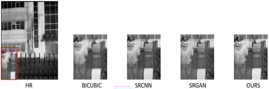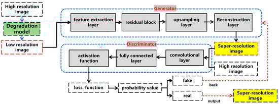 Infrared images hold significant application value in fields such as military reconnaissance, security surveillance, and medical diagnosis. However, issues like low resolution, high noise, and complex degradation characteristics severely hinder their practical application effectiveness. This paper introduces an infrared super-resolution reconstruction algorithm based on a random degradation model and Generative Adversarial Networks (GANs), addressing the diversity of infrared image degradation processes. The primary contribution lies in explicitly modeling key degradation parameters of infrared images (such as blur kernel and noise distribution) using a random degradation model, generating diverse low-resolution to high-resolution image pairs, and significantly enhancing the model’s generalization ability for complex degradations. Experiments on the Airo infrared dataset and a self-built infrared dataset demonstrate that when the resolution is increased by a factor of 2, 4, and 8, the 4× resolution reconstructed images exhibit notable advantages in terms of texture detail and noise suppression. Especially in 4× super-resolution reconstruction, compared to three typical deep learning algorithms, our algorithm improves the Peak Signal-to-Noise Ratio (PSNR) by 3.046 dB, 1.8489 dB, and 0.2108 dB, respectively, and the Structural Similarity Index (SSIM) by 0.0387 (4.76%), 0.0287 (3.48%), and 0.0131 (1.56%), respectively, with perceptual similarity decreasing by 0.2465, 0.13344, and 0.0514 (lower values indicate better perceptual quality). Subjective visual assessments further validate the algorithm’s significant advantages in noise reduction and weak texture restoration. This study proposes an infrared image super-resolution reconstruction method based on random degradation modeling, which holds significant theoretical and practical value in complex infrared degradation scenarios.