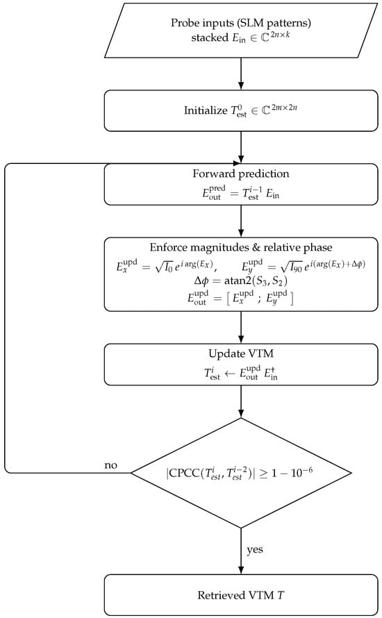 Controlling light’s polarization through disordered media is crucial for advanced optical applications but remains challenging due to scattering and depolarization. Most existing approaches either require interferometric or multi-path measurements, or they recover only part of the polarization response. We present a comprehensive approach for spatially resolved polarization control by accurately retrieving the vector transmission matrix (VTM) of a scattering system from intensity-only, full-Stokes polarimetric measurements. Using a simple single-path setup comprising a liquid-crystal spatial light modulator (SLM) with a tunable retarder after it, we achieve spatial polarization modulation at the input, thereby enabling probing of the medium’s polarization–scattering characteristics. The VTM is retrieved with an adapted Gerchberg–Saxton procedure that enforces not only the measured output amplitudes but also the relative phase between the two orthogonal output polarization components obtained from the Stokes parameters. We show that a single retarder setting results in inter-block correlations in the retrieved VTM due to input coupling, while two linearly independent retarder settings decouple the intrinsic blocks and recover the full VTM. In our experiment, for a set of input–output spatial modes, the VTM is retrieved with about accuracy, enabling polarization-resolved focusing with up to enhancement for horizontal, vertical, arbitrary linear, and circular states. This work offers a compact framework for active polarization shaping and for polarimetric characterization of complex media, advancing our understanding of vectorial light–matter interactions.