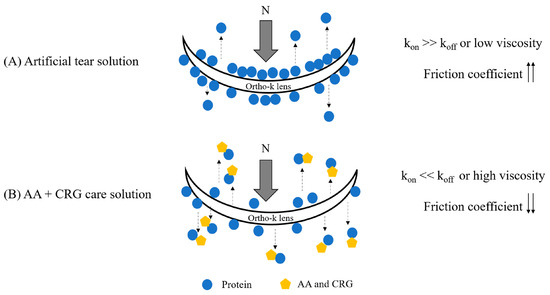 When an orthokeratology (ortho-k) lens contacts the ocular surface, tear film components such as lipids and proteins rapidly adsorb onto the lens, which may increase friction and contribute to discomfort if not properly removed. Polysaccharides have been reported to reduce protein deposition and