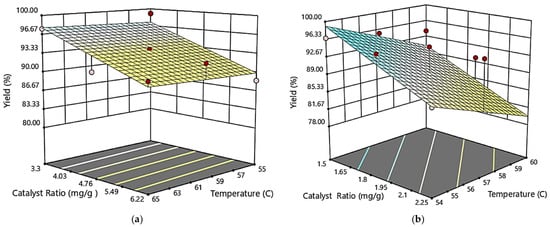 Chlorella sp. (semi-open photobioreactors). Concerning the two types of WCO feedstocks, the obtained equations are able to compute the biodiesel viscosity and yield, in good correlation with the experimental values, in relation to the temperature and ratio of catalyst to oil/alcohol solution. The assessed household WCO has better yield and quality as it contains fewer impurities, whereas the restaurant WCO needed to be further purified, driving up the prices. Although