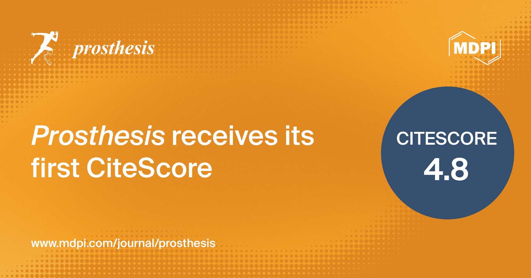 We are pleased to inform you that Prosthesis (ISSN: 2673-1592) has been assigned its first CiteScore of 4.8 for June 2023, after its inclusion in Scopus (Elsevier) in 2022. The CiteScore ranks 22 among 146 titles (Q1) in the “Rehabilitation” category and 13 among 60 titles (Q1) in the “Oral Surgery” category.