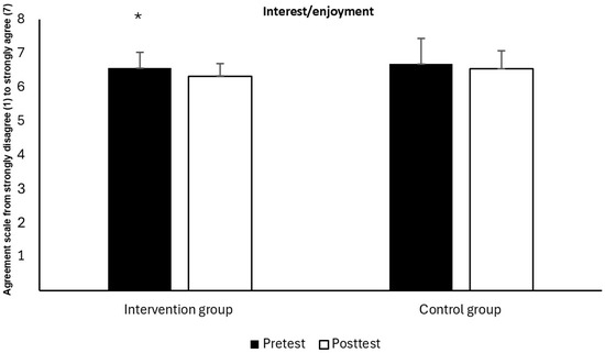 Background/Objectives: In this study, we aimed to examine the changes in players’ interest/enjoyment, perceived competence, and value/usefulness through an 11-week soccer training program, using a randomized experimental study. Methods: Overall, 175 children aged 9–12 years applied to join the soccer training