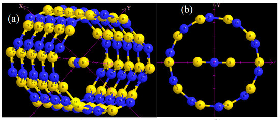 Quantum Behavior in a Non-Bonded Interaction of BN (+, −, 0) B @ (5, 5) BN: Second-Order Jahn–Teller Effect Causes Symmetry Breaking