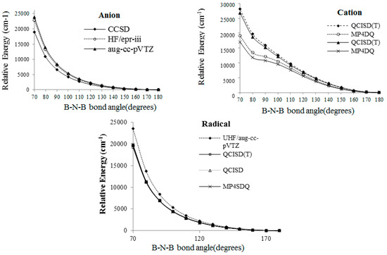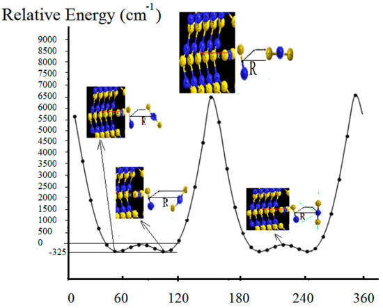 The anion, cation, and radical structural forms of B2N (−,0,+) were studied in the case of symmetry breaking (SB) inside a (5, 5) BN nanotube ring and were also compared in terms of non-covalent interaction between these two parts. The non-bonded system of B2N (−,0,+) and the (5, 5) BN nanotube not only causes SB for BNB but also creates an energy barrier in the range of 10−3 Hartree of due to this non-bonded interaction. Moreover, several SBs appear via asymmetry stretching and symmetry bending normal mode interactions according to the multiple second-order Jahn–Teller effect. We also demonstrated that the twin minimum of BNB’s potential curve arises from the lack of a proper wave function with permutation symmetry, as well as abnormal charge distribution. Through this investigation, considerable enhancements in the energy barriers due to the SB effect were also observed during the electrostatic interaction of BNB (both radical and cation) with the BN nanotube ring. Additionally, these values were not observed for the isolated B2N (−,0,+) forms. This non-bonded complex operates as a quantum rotatory model and as a catalyst for producing a range of spectra in the IR region due to the alternative attraction and repulsion forces.