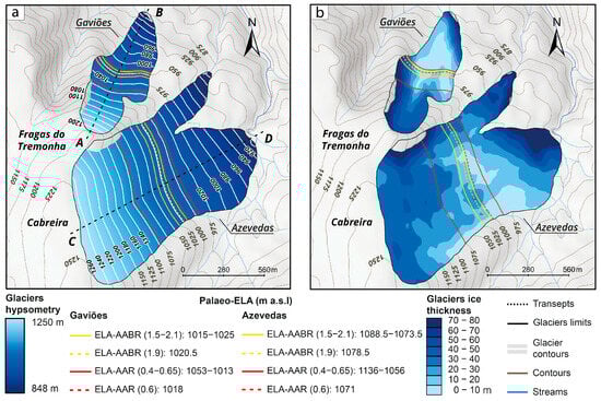 Low-altitude palaeoglaciation in Atlantic mountain regions provides important insights into past climatic conditions and moisture dynamics during the Last Glacial Cycle. This study presents the first quantitative reconstruction of palaeoglaciers in Serra da Cabreira (northwest Portugal), a mid-altitude granite massif located along the Atlantic fringe of the Iberian Peninsula. Detailed geomorphological mapping (1:14,000) and field surveys identified 48 glacial and periglacial landforms, enabling reconstruction of two small valley glaciers in the Gaviões and Azevedas valleys using GlaRe numerical modelling. The spatial distribution of palaeoglacial landforms shows a pronounced west–east asymmetry: periglacial features prevail on wind-exposed west-facing slopes, whereas glacial erosion and depositional landforms characterise the more protected east-facing valleys. The reconstructed glaciers covered 0.24–0.98 km2, with maximum ice thicknesses of 72–89 m. Equilibrium-line altitudes were estimated using AABR, AAR, and MELM methods, yielding consistent palaeo-ELA values of ~1020–1080 m. These results indicate temperature depressions of ~6–10 °C and enhanced winter precipitation associated with humid, Atlantic-dominated conditions. Comparison with regional ELA datasets situates Cabreira within a clear Atlantic–continentality gradient across northwest Iberia, aligning with other low-altitude maritime palaeoglaciers in the northwest Iberian mountains. The findings highlight the strong influence of the orographic barrier position, moisture availability, valley hypsometry, and structural controls in sustaining small, climatically sensitive glaciers at low elevations. Serra da Cabreira thus provides a key reference for understanding Last Glacial Cycle palaeoclimatic variability along the Western Iberian margin.