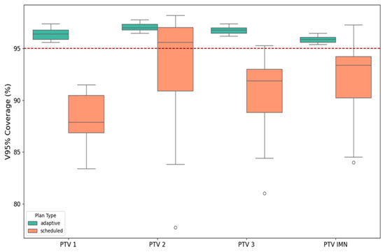 Online adaptive radiotherapy mitigates errors in absorbed dose delivery due to daily anatomical changes during hypofractionated breast treatment, particularly when comprehensive nodal therapy includes the internal mammary chain. To illustrate this, we present a case of a 65-year-old woman with left-sided luminal B invasive carcinoma, who underwent segmentectomy and level 1–2 dissection. Pathology revealed an 18 × 15 × 13 mm primary tumor with lymphovascular invasion, two of eleven axillary nodes positive, and intramammary metastasis, staged pT1cN1a. She received adjuvant docetaxel–cyclophosphamide followed by letrozole. Hypofractionated radiotherapy (40 Gy in 15 fractions) was administered in an inspiration breath-hold setting using a CBCT-guided online-adaptive platform. Adaptive planning improved V95% coverage over the planned treatment for all targets: on average, whole breast coverage increased from 88.4% to 96.3%, supraclavicular from 93.0% to 97.1%, axilla from 90.6% to 96.7%, and internal mammary from 91.8% to 95.9%. Organ-at-risk metrics remained within limits: the mean heart dose increased slightly (from an average of 0.12 Gy in scheduled to 0.15 Gy in adaptive plans). At the same time, the LAD D0.03 cm3 decreased, and the heart V4 Gy fell modestly (from 13.3% in the scheduled plan to 8.2% in the adaptive plan), reflecting low-dose redistribution without exceeding constraints. Lung and thyroid mean doses remained comparable. The patient tolerated treatment well, with no acute toxicity or local recurrence. This case highlights the importance of daily adaptation for complex left-sided radiation treatment involving internal mammary nodes, demonstrating target recovery without exceeding absorbed dose constraints and supporting future studies on control, toxicity, and quality of life.