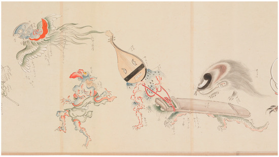 This article argues that animism in the Japanese context is more fruitfully understood as animation, a technique that imbues man-made things with life. Two forms of animation are at work in so-called animist beliefs: one is the docile animation of instruments when skillfully used by humans, in which case the instrument becomes part of the human body; the other is the sense of aliveness that one experiences when an object resists human use and intention. This latter sense is crucial for the narrative of the 14th century illustrated scroll “The Record of Tool Specters” and the painted genre of “Night Parade of Hundred Demons”, in which everyday objects, vessels and instruments appear as demons and threaten human life. These images show how the instruments come alive through animation strategies intrinsic to the illustrated scroll as a medium, activated by the performances of professional storytellers and shaped by the artists’ anthropomorphizing imagination. The tool specters, on the cusp of breaking free from human bondage, are recaptured in a different network of meaning, allusion and fecund cultural production. What animates the inanimate objects is a media infrastructure, a network of media platforms that stretches back in time and that allows these apparitions to be conjured in different forms and contexts.