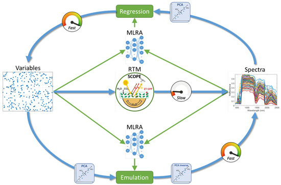 The current algorithms employed to estimate biophysical parameters of vegetation include statistical regression, radiative transfer models, machine learning and deep learning techniques. Regression models based on a single vegetation spectral index or another spectral feature are simple and easy to use, with relatively stable accuracy; they are therefore the most widely utilized models. In contrast, machine learning has the ability to nonlinearly model the relationships between the biophysical parameters of vegetation and a satellite-derived spectrum. Deep learning, a new machine learning method, was initially used for target recognition and classification, and has gradually become a popular approach for the estimation of the biophysical parameters of vegetation.